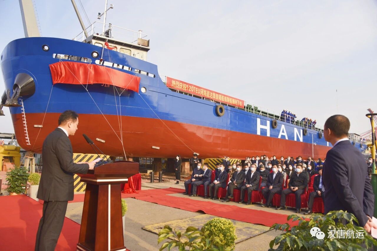 中国船级社上海分社副总经理庄重在致辞中表示,上海汉唐航运有限公司深耕内河集装箱运输领域,研发建造了第一艘江海直达集装箱船“汉唐上海”,开辟了国内首条江海直达航线“苏州-洋山”线,在推动构建安全、绿色、高效的内河集装箱集疏运服务体系中发挥了突出的示范引领作用。上海分社作为120TEU系列河海直达集装箱船的审图和检验单位,将继续与上海汉唐航运有限公司及各方紧密合作,提供全方位和及时周到的检验服务,为项目的顺利交付和后续运营做出有力的保障,确保将该项目打造成精品工程、示范工程,为上海港集装箱集疏运体系建设提供有力的支撑。