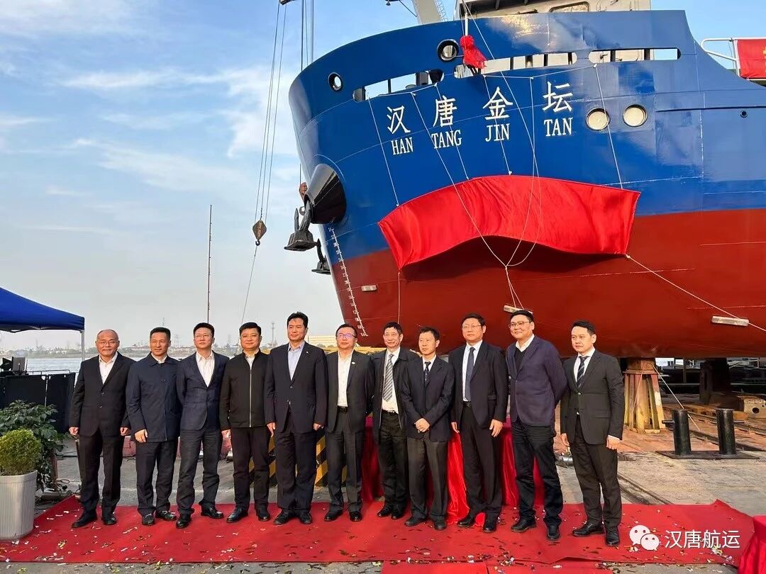 活动中,中国船舶集团上海船舶工业有限公司副总经理、上海江南造船厂有限公司党委书记、执行董事张禕;上海汉唐航运有限公司董事长范金生;中国船级社上海分社副总经理庄重;上海市交通委员会副主任叶兴;上港集团总裁严俊分别在仪式上致辞,常州市金坛区代理区长胥亚伟和范金生董事长共同为新船行掷香槟礼,为船名揭幕。