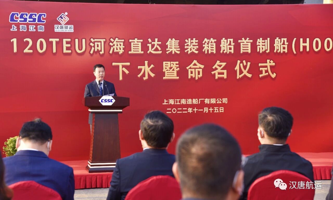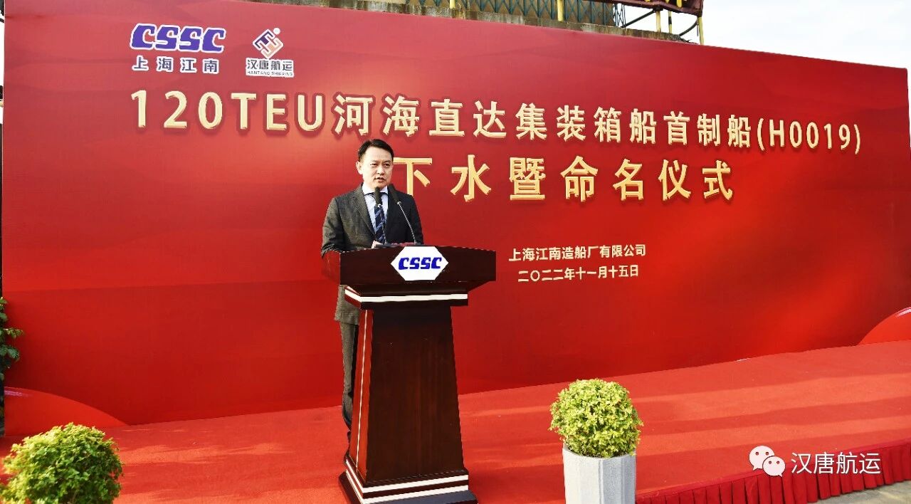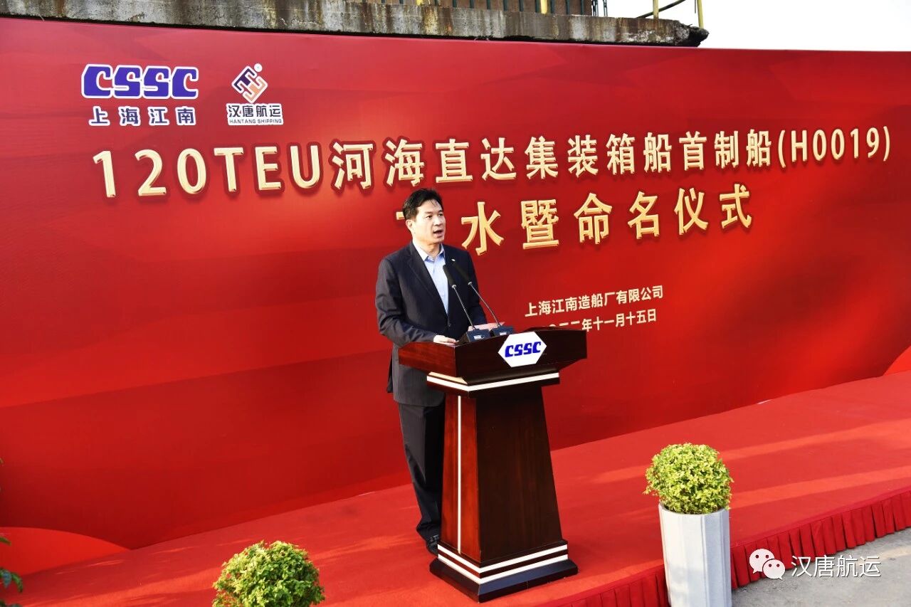 上海市交通委副主任叶兴先生在致辞中表示,刚刚胜利闭幕的中共二十大报告明确提出要“加快建设交通强国”,这是对我们交通行业战线所有人员提出的历史要求,也是我们光荣的历史使命。上海汉唐航运有限公司多年来一直积极参与并推动中国河海直达航运事业的突破与发展,是国内第一家建造河海直达集装箱船舶的航运企业,为上海乃至全国港口集疏运体系优化提供了新的解决方案和路径,为中国水路运输行业做出了积极贡献。河海直达船型也是上海港提升内河运输比例、推动“公转水”、优化运输结构的有力抓手。作为河海直达龙头企业,希望汉唐航运抓住历史机遇,加快做大做强河海直达水路运输服务网络,为上海港运输结构调整和长三角水路运输高质量发展做出更大贡献。